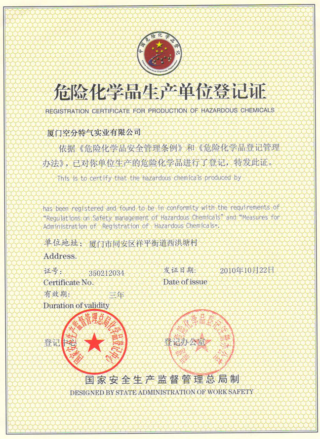 危險(xiǎn)化學(xué)品生產(chǎn)單位登記證(正本)